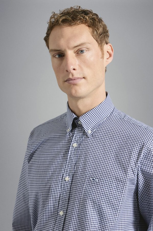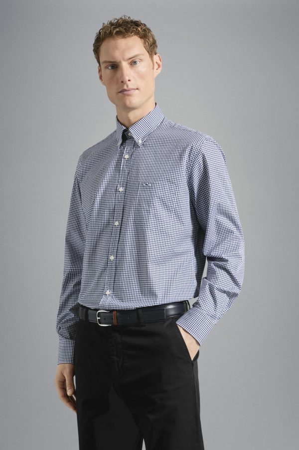 Check Cotton Shirt Square White Blue | Men Paul & Shark Shirts