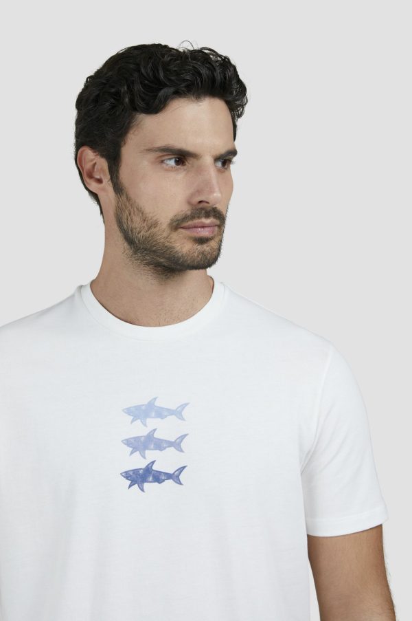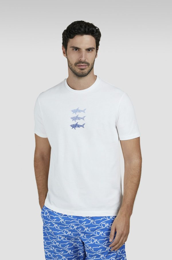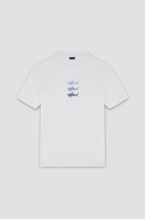 Cotton Jersey T-shirt With Sharks Print Blanc De Blanc | Men Paul & Shark T-Shirts