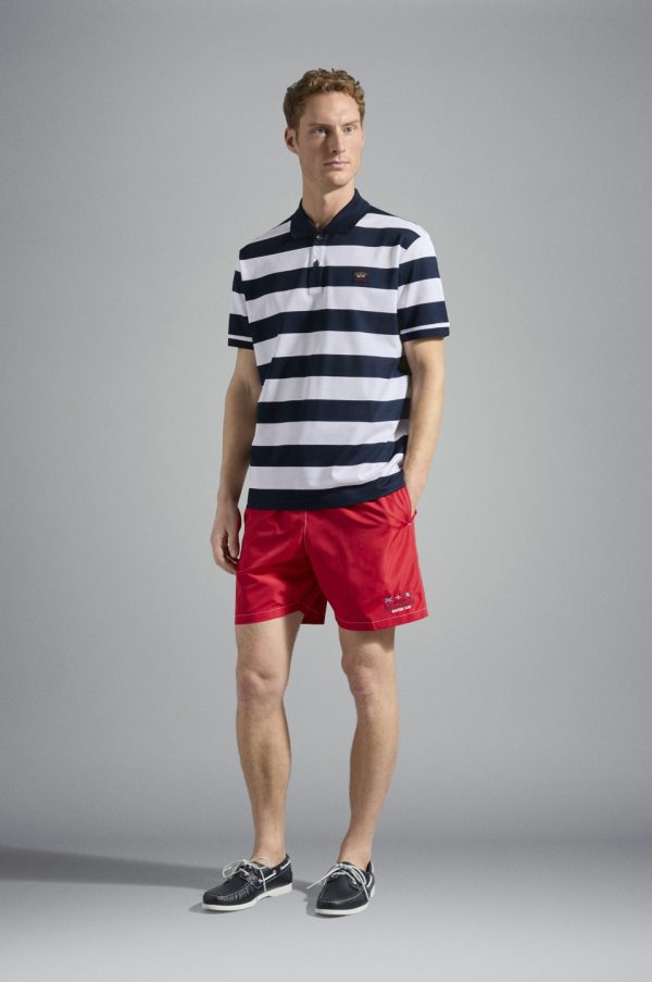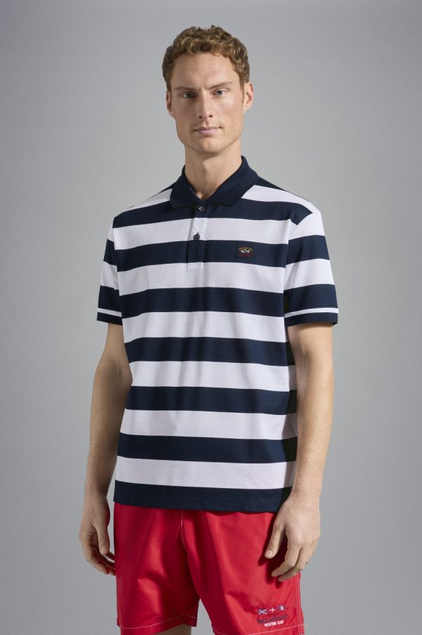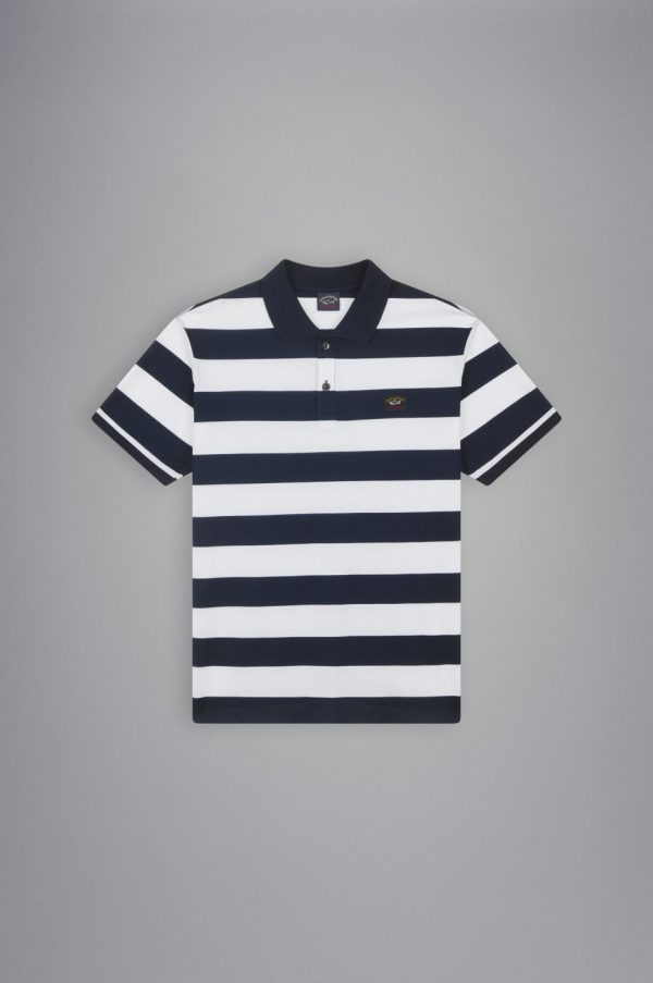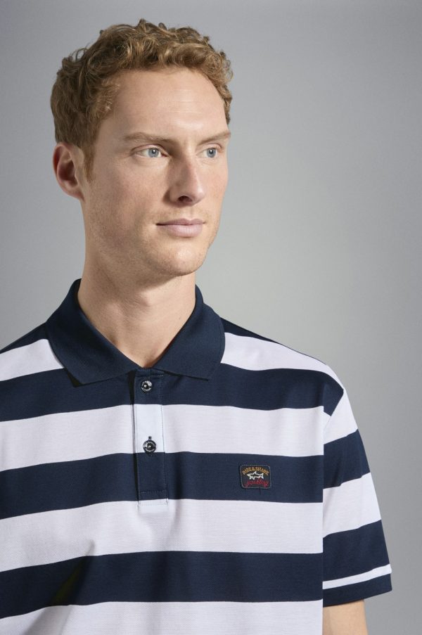 Cotton Piqué Polo With Iconic Badge Bluwhite | Men Paul & Shark Polos And T-Shirts