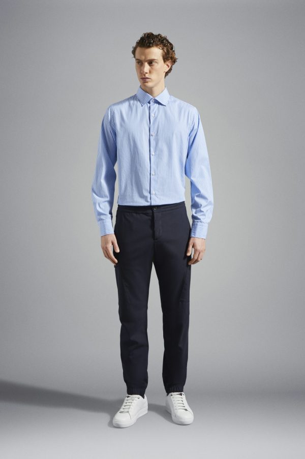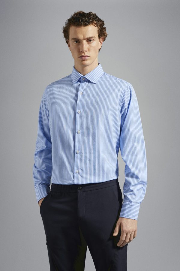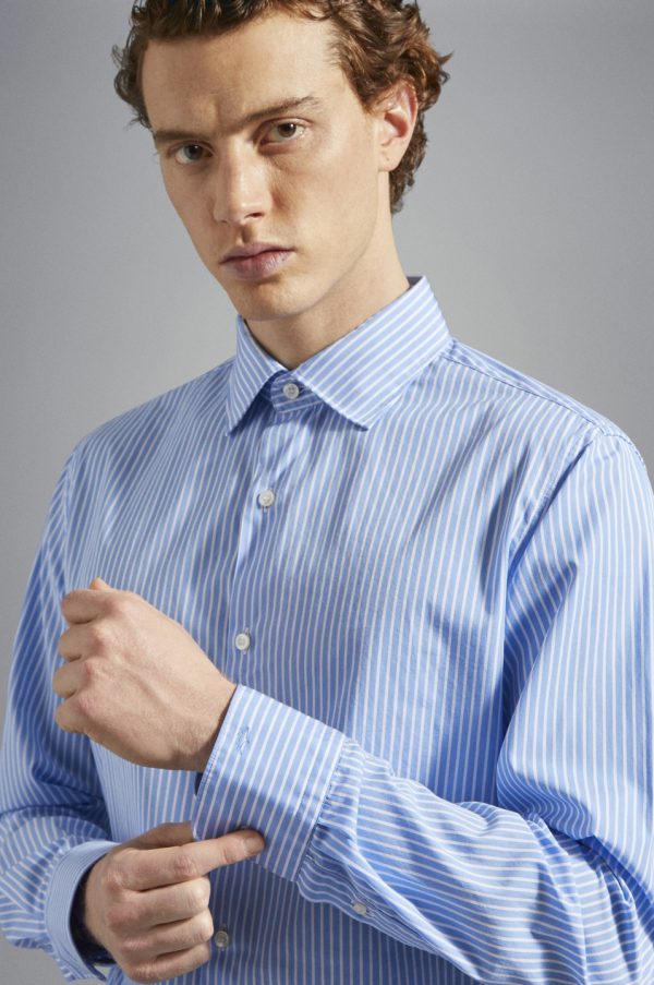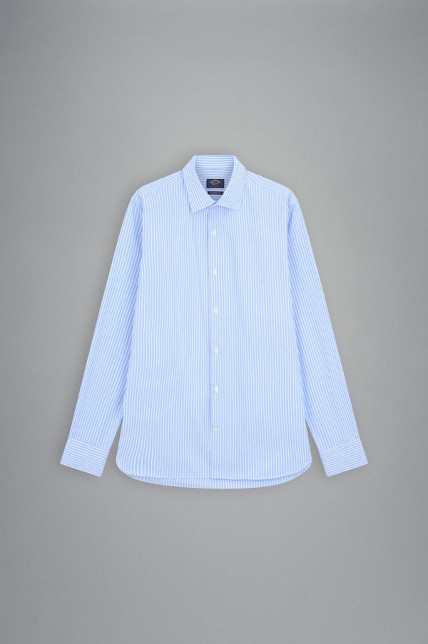 Cotton Poplin Shirt Rows Light Blue White | Men Paul & Shark Shirts