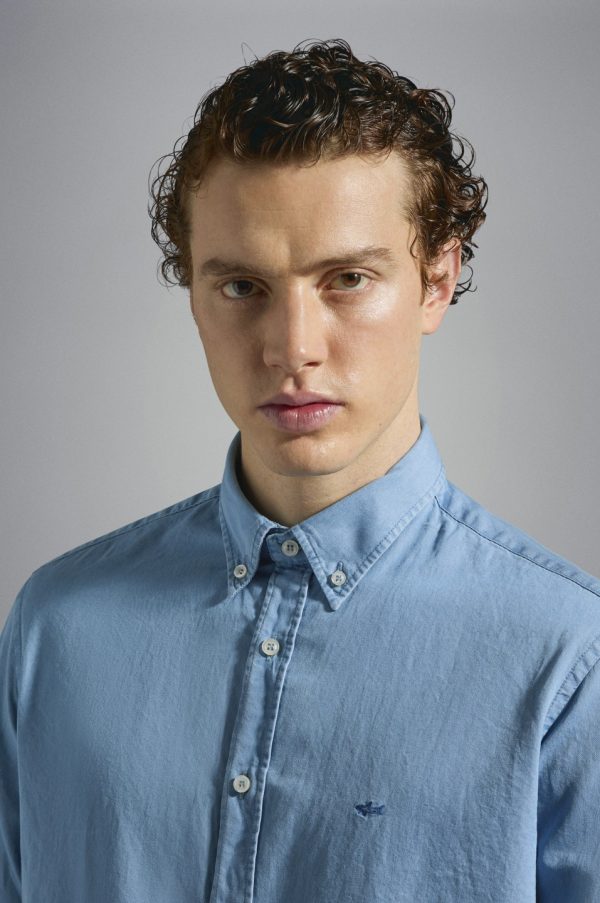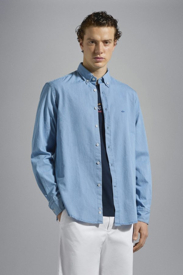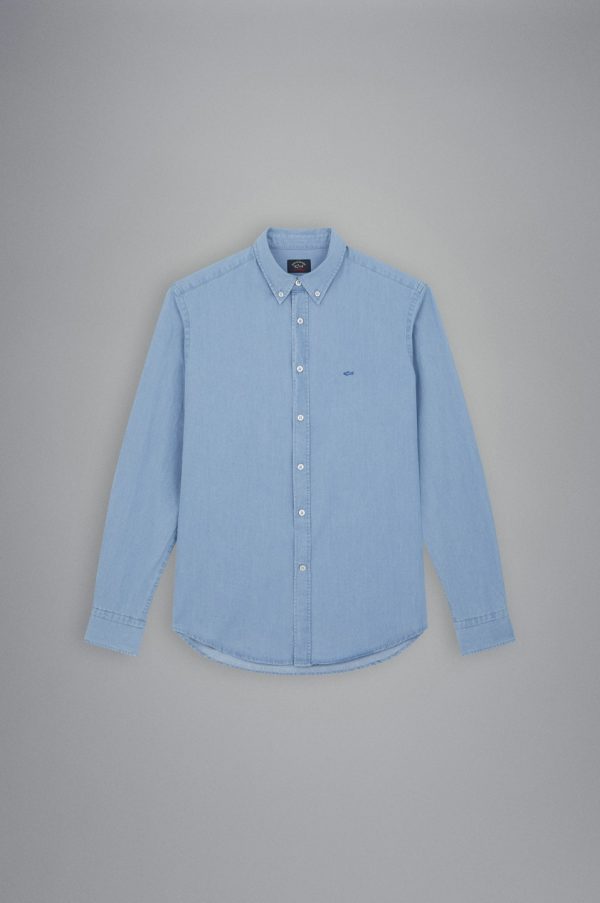 Denim Cotton Shirt Azzurro Blue | Men Paul & Shark Shirts