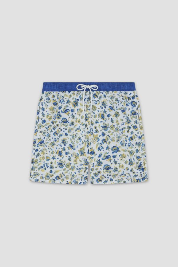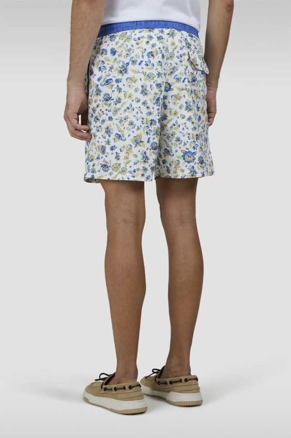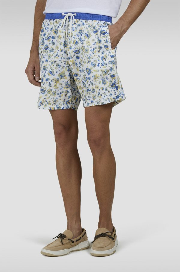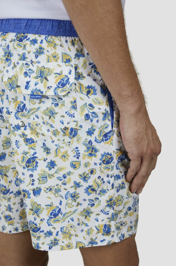 MEN’S Swim Trunks In Ultralight Fabric Regular Fit | Paul & Shark White Flower Shark Blue Yellow | Men Paul & Shark Beachwear