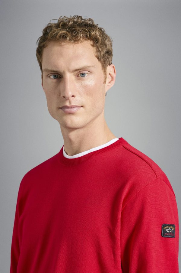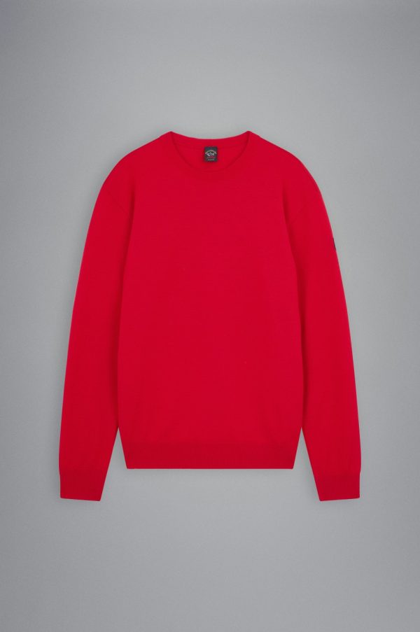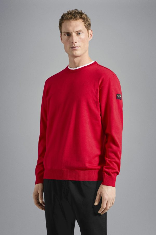 Merino Wool Crew Neck With Iconic Badge Red | Men Paul & Shark Knitwear