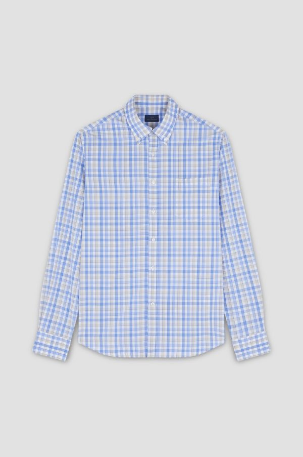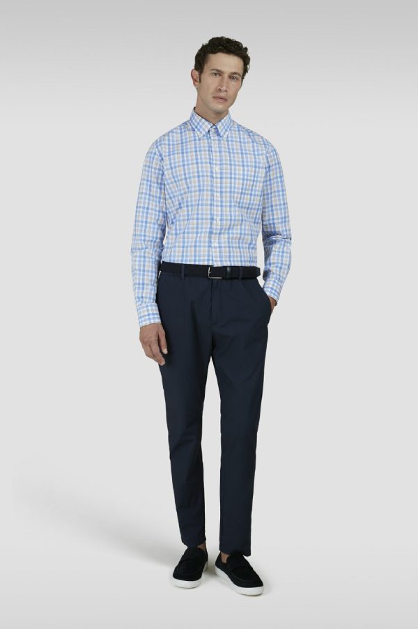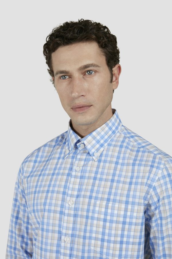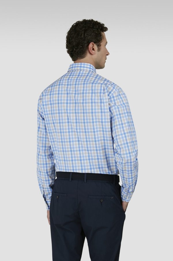 Soft Touch Cotton Poplin Shirt With Check Pattern Tartan White Light Blue Beige | Men Paul & Shark Shirts