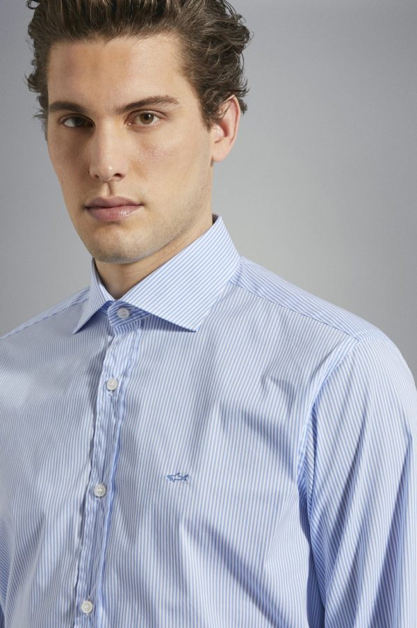 Stretch Cotton Shirt Rows White Light Blu | Men Paul & Shark Shirts