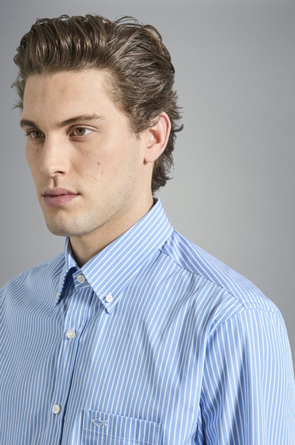 Striped Cotton Shirt Rows Light Blue White | Men Paul & Shark Shirts