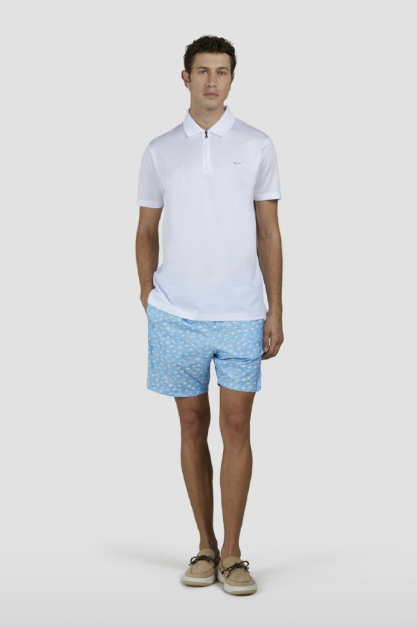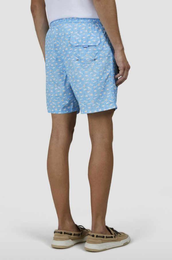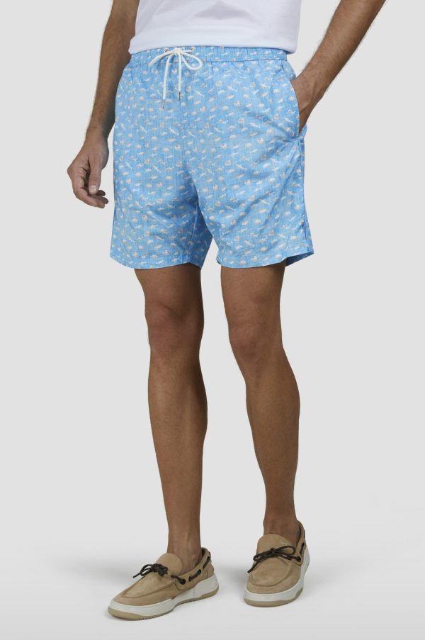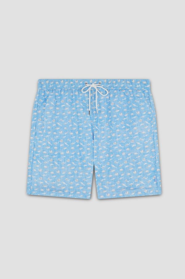 Swim Shorts With Shark Print Turquoise Linen With Shark | Men Paul & Shark Beachwear