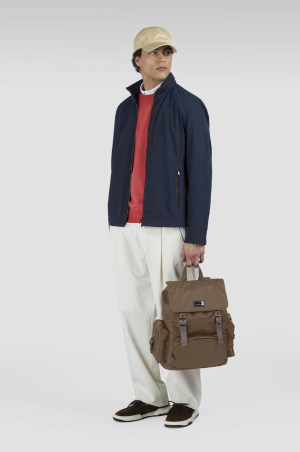 Utility Nylon Backpack With Leather Trim Beige | Men Paul & Shark Bags And Backpacks