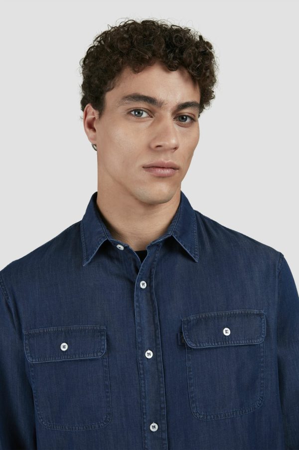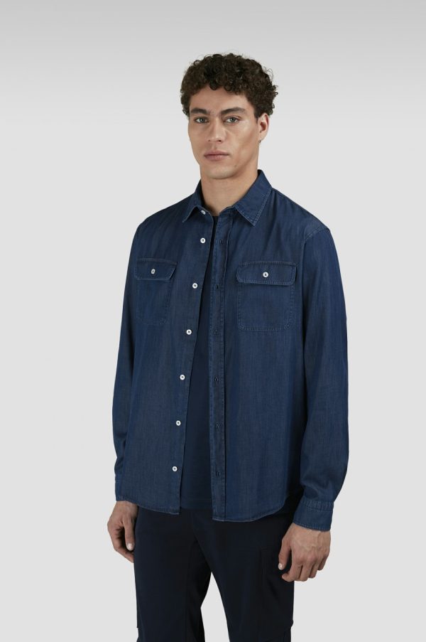 X-Soft Shirt In Giza Cotton Light Denim Dark Blue Jeans | Men Paul & Shark Shirts