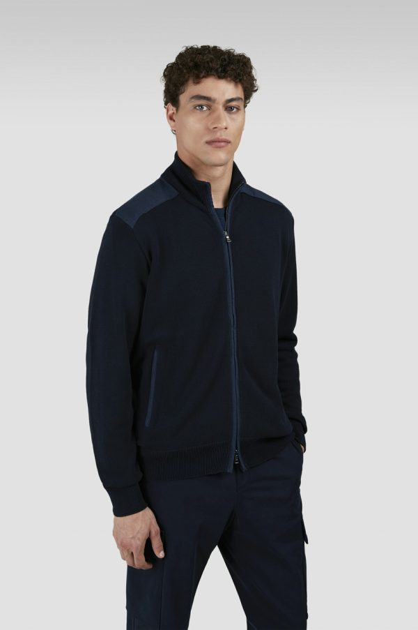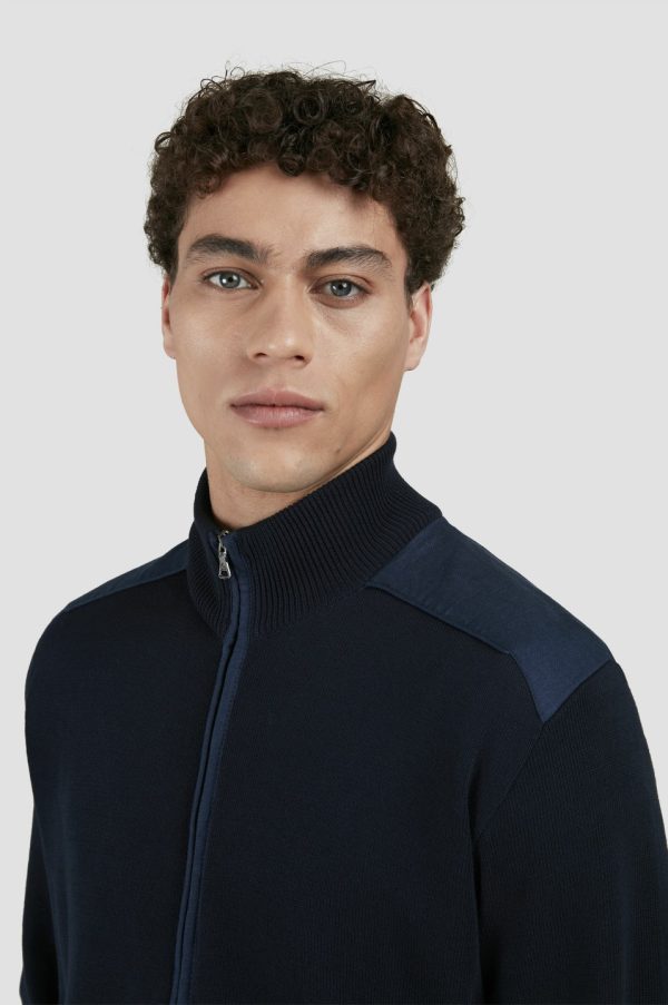 Zip-up Cardigan In Fresh Cotton With Linen Details Blue | Men Paul & Shark Knitwear