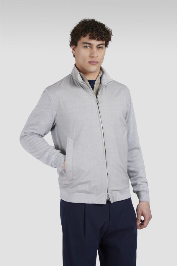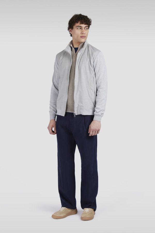 Zipped Sweater In Wool And Silk And Cotton And Silk Stone Grey | Men Paul & Shark Knitwear